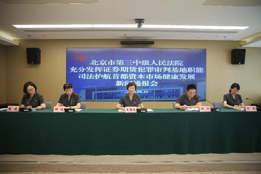 8月20日,北京市第三中级人民法院(以下简称北京三中院)召开新闻通报会,通报北京三中院证券期货犯罪审判基地审理案件的总体情况、案件特点、基地建设情况和工作机制,发布六个典型案例并提出治理建议。
