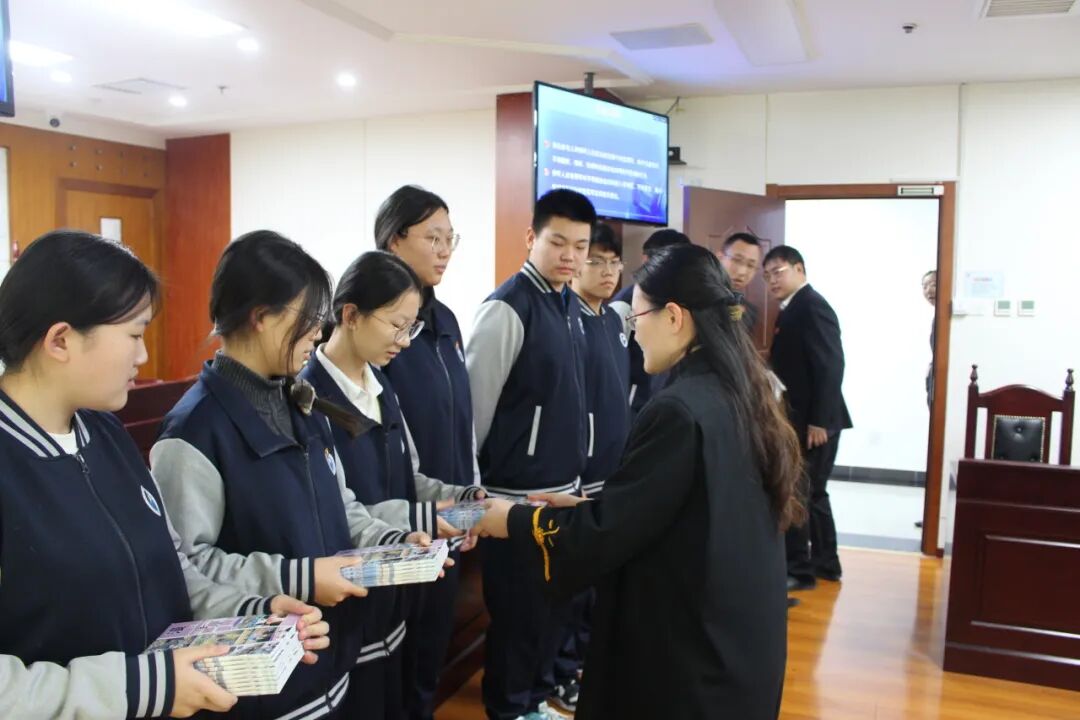 北京电子信息技师学院的50余名师生来到北京市通州区人民法院,参观法院员额法官墙、少年法庭、院史馆和文化长廊,并现场旁听了一起案件。活动后,刑庭(少年法庭)副庭长王欢欢向师生赠送了通州法院编撰的青少年普法漫画《漫话法律》。