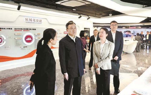 今年十月,北京市检察院党组书记、检察长朱雅频(左二)参观北京CBD商务中心区检察工作站,带队调研涉外检察品牌建设工作。