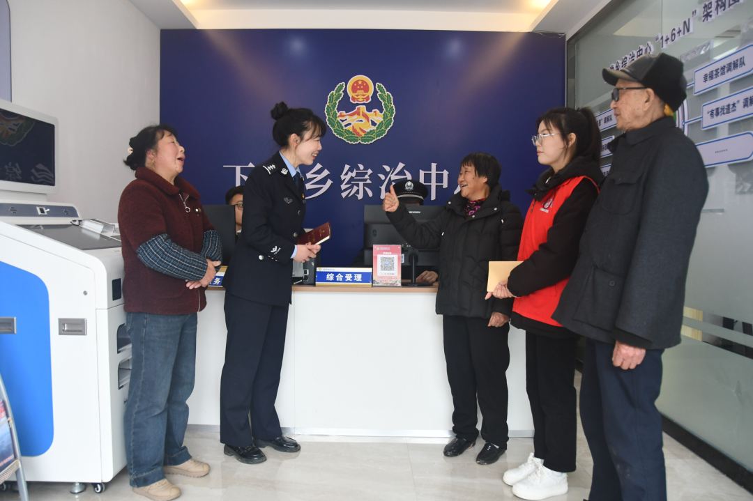 3月9日,福建省宁德市寿宁县下党派出所联合司法所在乡综治中心成功调解一起因征地引起的矛盾纠纷后,群众对工作人员表示感谢。胡泽霖摄(法治日报)