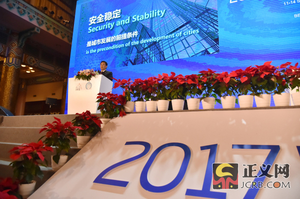 9月13日上午,第二十二届国际检察官联合会年会暨会员代表大会举行第三次全体会议。图为中国北京市人民检察院检察长敬大力发言。闫昭 摄