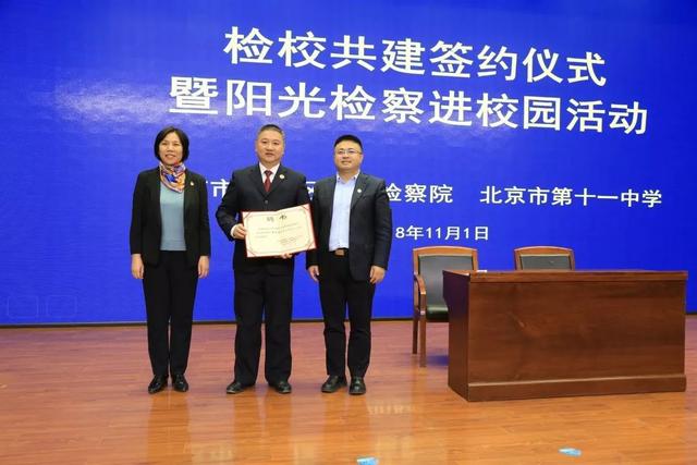为深入贯彻落实党中央提出的“谁执法谁普法”普法责任制要求,以及最高检张军检察长对未成年人法治教育工作的指导,积极推进北京市检察机关法治宣传教育“十进百家、千人普法”主题活动,切实推动“法律进学校”专项工作深入开展,11月1日,东城院与北京市第十一中学举行“检校共建签约仪式暨阳光检察进校园”活动。