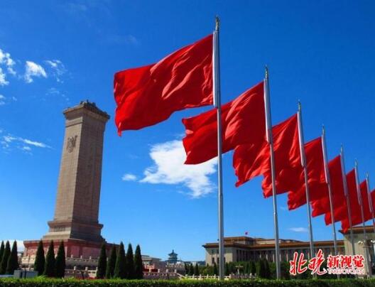 蓝天白云下,人民英雄纪念碑显得格外雄伟庄重。