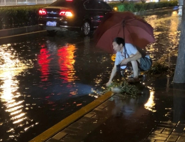 8月9日晚,突降暴雨。22时左右,市民张诗羽从东城区广渠门内大街经过时,看到一位50多岁的男子正蹲在路边清理排水口的杂物,张诗羽举起手机拍下了这暖心一幕。记者找到这位热心人贾发起时,他却连连说,自己做的事太小了,再正常不过。