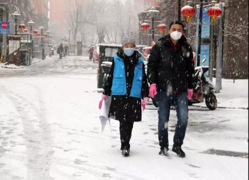 报到的第一天正下大雪。秦建平做好了全副武装,出门前,丈夫还为她专门准备了一瓶消毒酒精。寒风和降温丝毫没有影响她的干劲儿。一到社区,秦建平就迅速投入工作,认真向居委会请教排查方法,随后和大家一起铲雪,到每一道楼门张贴疫情通告,一丝不苟地做好进出行人、车辆的检查和登记。
