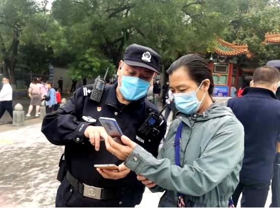 在八大处公园 2020年国庆游园会绚丽多彩、喜气十足。八大处公园派出所所长李帅银和同事们一大早就在公园门口开展秩序维护工作,为游园群众提供力所能及的帮助,并在园区内进行巡逻守护,他说:“我们踏实工作,让百姓安心过节。”