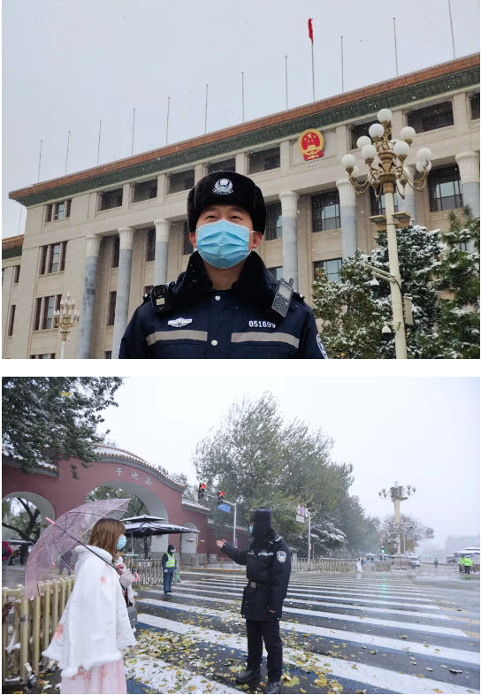伴随着下半年的最强寒潮,北京迎来了初雪。在气温跌破零度、寒风刺骨的情况下,首都公安民警的藏蓝警服“变身”成雪色银装,在全市各处执勤值守、巡逻防控、疏导秩序、服务群众……构筑起一道牢固的安全防线。