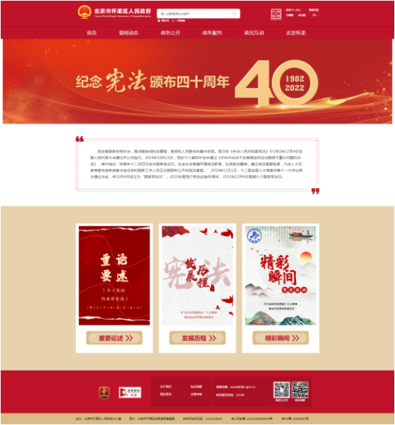 12月4日,怀柔区委全面依法治区委员会守法普法协调小组、区司法局举办“纪念宪法颁布四十周年”线上图片展,涵盖习近平总书记关于宪法的重要论述、宪法的制定和发展以及怀柔区历年宪法宣传活动的精彩瞬间三部分内容。