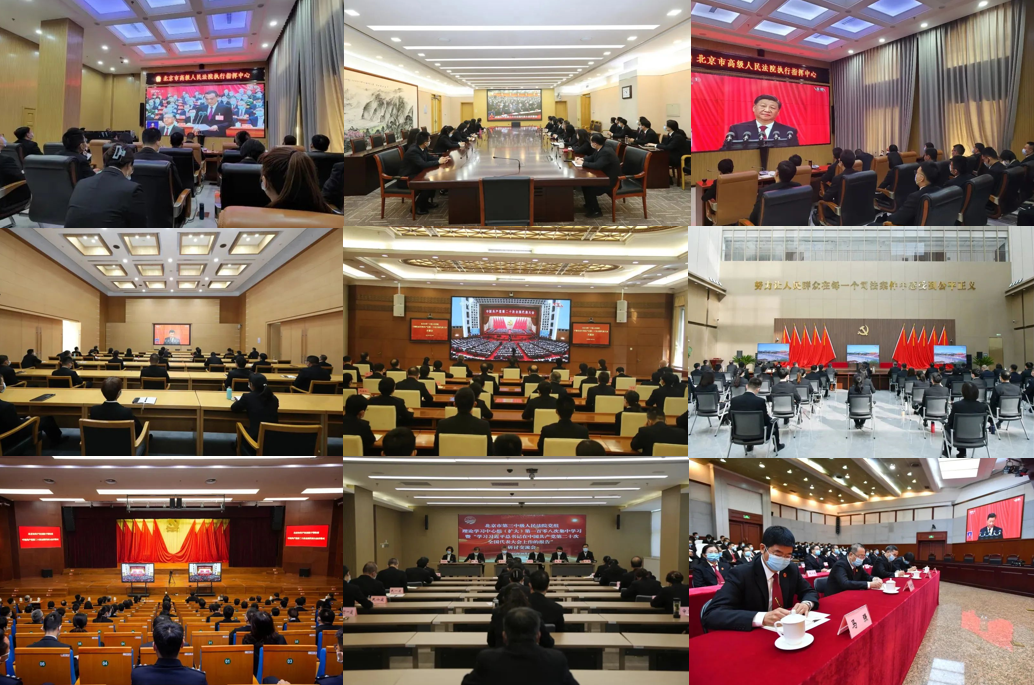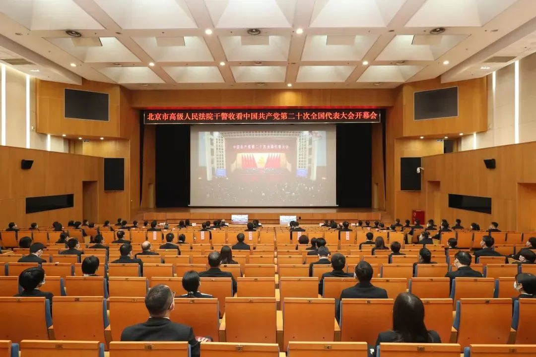 北京市高级人民法院组织全市法院万余名干警收听收看党的二十大开幕会盛况,聆听大会报告,迅速兴起学习宣传贯彻热潮,把全市法院干警的思想统一到党的二十大精神上来,把力量凝聚到党的二十大确定的各项任务上来,让党的二十大精神在首都法院落地生根、形成生动实践。
