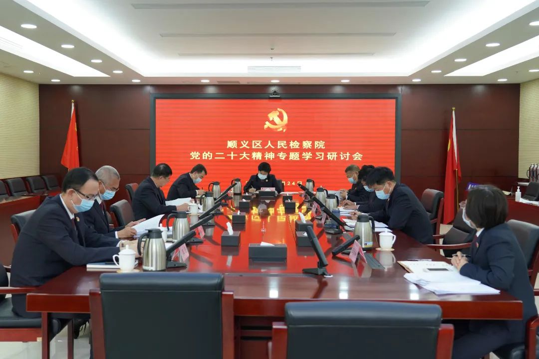 10月24日,顺义区检察院召开党组理论学习中心组(扩大)学习会议,专题学习研讨党的二十大精神。会议由党组书记、检察长姜淑珍主持。各党组成员、检委会专职委员、部分部门负责人参加。