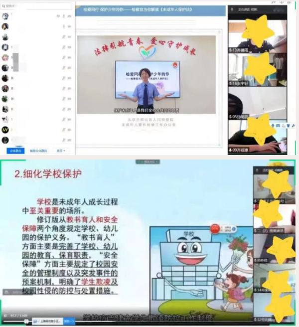 在国家宪法日到来之际,为深入学习贯彻习近平法治思想,区检察院开展线上普法活动,大力弘扬宪法精神,营造宪法学习宣传氛围,区检察院未检察官通过网络平台在密云区部分小学开展《未成年人保护法》普法宣讲。结合具体案例,为学生及家长讲解相关法律知识,切实加强未成年人司法保护,进一步提升未成年人的法律素养、法治意识和自护能力,引导树立正确的人生观、价值观。