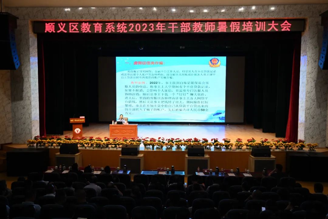 为进一步加强电信网络诈骗宣传力度,切实提高广大教职工识诈防骗能力。8月23日,顺义公安分局反诈中心会同区教委,组织开展预防电信诈骗知识专题讲座,各校领导干部出席主会场,全区一万余名教职工观看在线“云课堂”直播。