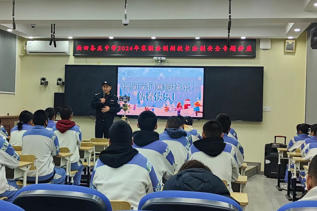 1月19日,法治教育活动中,民警用通俗易懂的语言围绕交通安全、消防安全、食品安全、居家安全、文明上网等方面向学生讲解寒假安全教育知识。同时结合典型案例、以案释法,重点为全校师生介绍了各类电信诈骗手段和作案方式,对电信诈骗的特点、种类、危害以及如何防范电信诈骗进行了深入浅出的讲解,并向同学们宣讲了《未成年人网络保护条例》,提醒同学们网络非法外之地,一言一行均需谨慎。