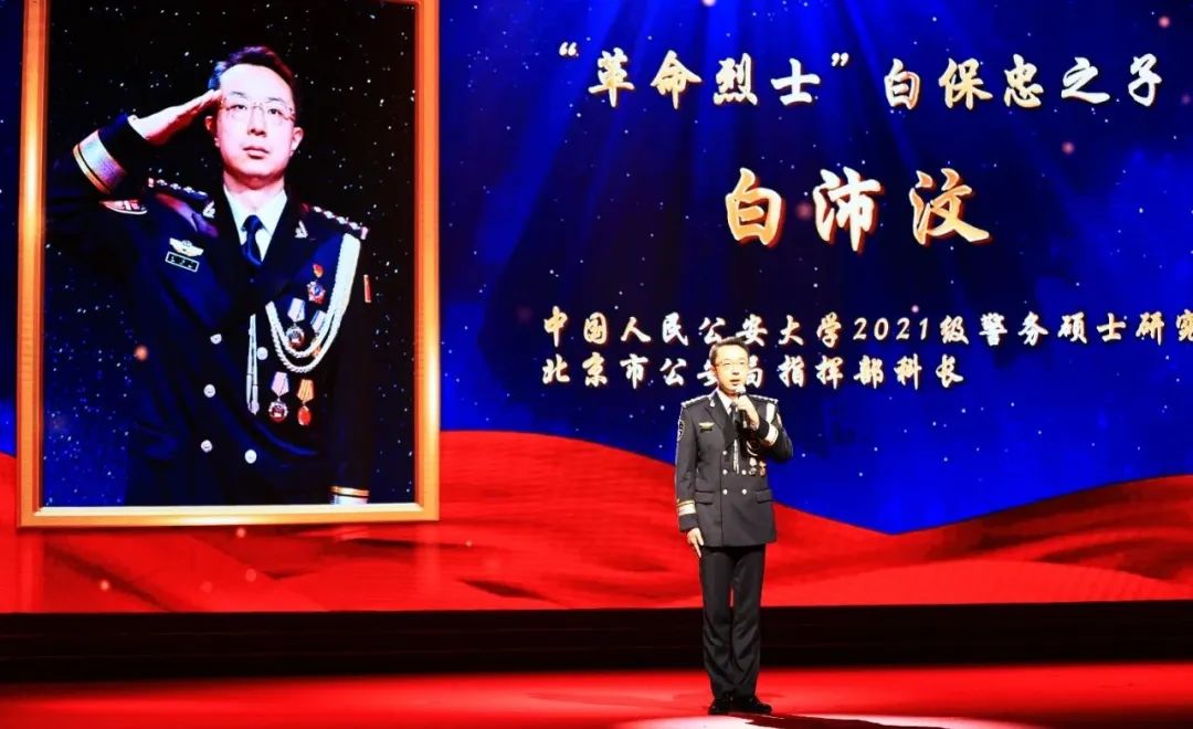 2023年11月3日,白沛汶参加公安部在京举办的首场“弘扬英烈精神 凝聚奋进力量”公安英烈先进事迹巡回报告会。