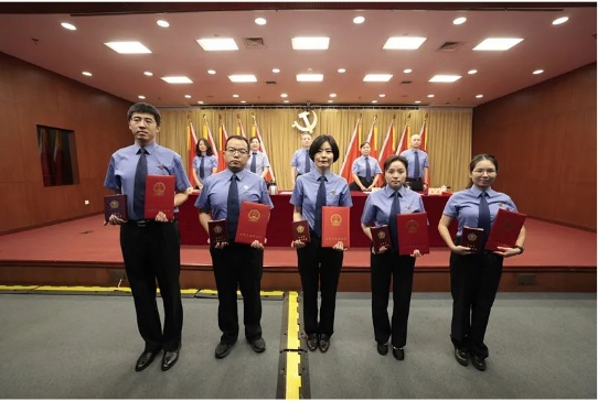 为在2023年度公务员考核中记三等功及嘉奖奖励的干警代表颁发证书