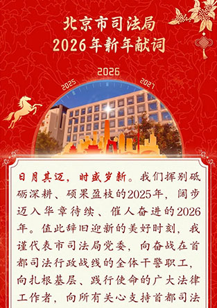 伴随着2026年零点的钟声,北京市监狱管理局(北京市戒毒管理局) “零点报告”行动会场传来捷报——首都监狱戒毒系统实现连续29年监所安全稳定、 30年遣送罪犯安全无事故工作目标。针对2026年工作,市司法局明确要求首都监狱戒毒系统必须牢牢把握监狱戒毒机关的政治属性和职能定位,发扬历史主动精神,坚决攻克难关、防范风险、迎接挑战。同时明确,要始终坚守公正执法底线,争做法治建设的坚定践行者,在每一个执法环节、每一起执法案件中践行公平正义,以实际行动提升司法公信力,为建设更高水平的平安北京、法治中国首善之区贡献更大力量。详细>>