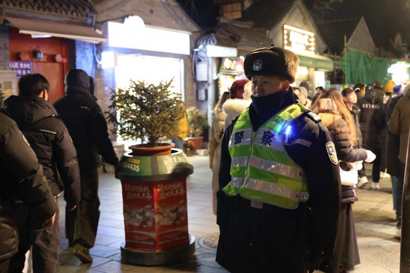 元旦假期期间,东城公安采取定点值守和动态巡逻相结合的方式,加强对街巷出入口、主要节点和沿街商铺集中区域的巡逻管控,及时开展人流疏导和秩序维护。结合往年经验,重点强化高峰时段警力部署,提高见警率和管事率,确保游客集中时段秩序平稳有序。