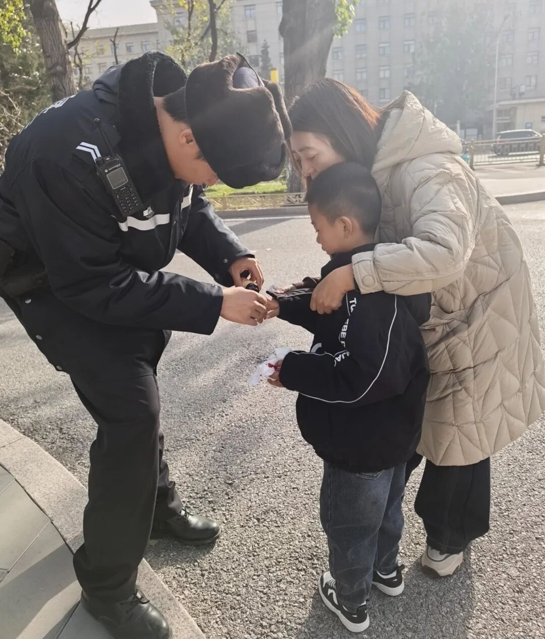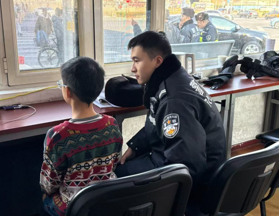 近日,海淀分局复兴路派出所民警在军博执勤期间,发现一名10岁左右的小男孩独自一人在路边哭泣。民警迅速上前询问,考虑到天气寒冷,便先将他带回到治安岗亭。经询问,小男孩是与家人吵架后独自离家。民警一边安抚小男孩,一边尝试联系其家人。最终,小男孩被安全送回了家人身边。临走前小男孩告诉民警,以后也要当一名警察,保护好家人,保护好爸爸妈妈。