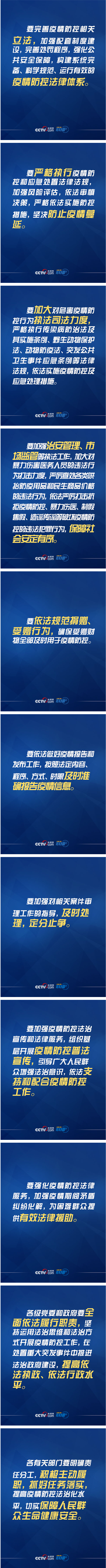 2月5日下午,习近平主持召开中央全面依法治国委员会第三次会议强调,要在党中央集中统一领导下,始终把人民群众生命安全和身体健康放在第一位,从立法、执法、司法、守法各环节发力,全面提高依法防控、依法治理能力,为疫情防控工作提供有力法治保障。