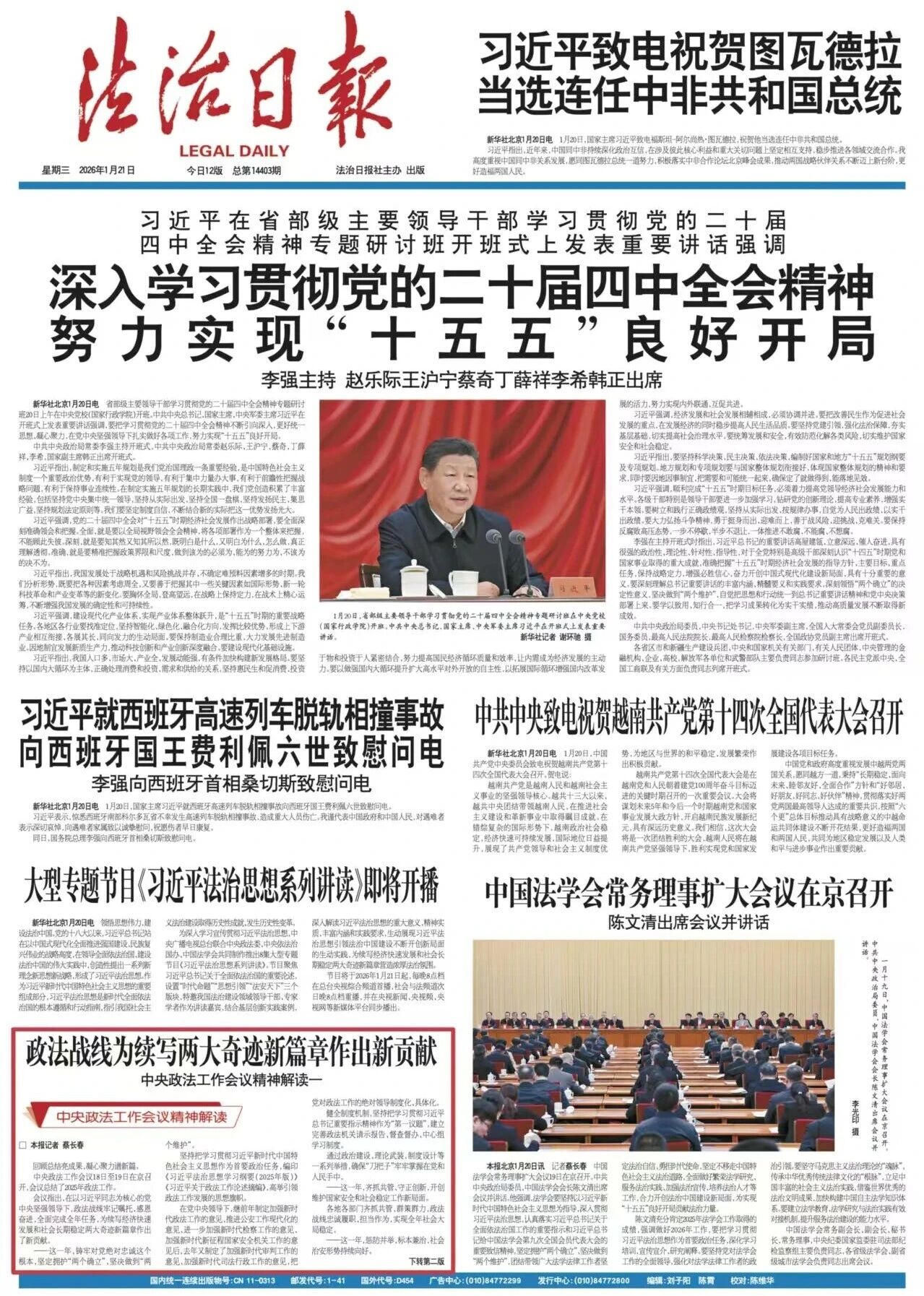 在党中央领导下,继前年制定加强新时代政法工作的意见、推进公安工作现代化的意见、进一步加强新时代检察工作的意见、加强新时代新征程国家安全机关工作的意见后,去年又制定了加强新时代审判工作的意见、加强新时代司法行政工作的意见,把党对政法工作的绝对领导制度化、具体化。