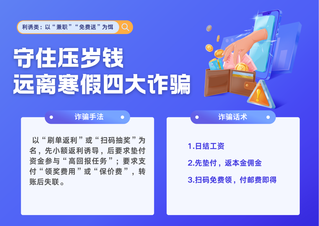 骗术多变,目的唯“钱”,守住“不轻信、不转账”底线,过平安寒假。