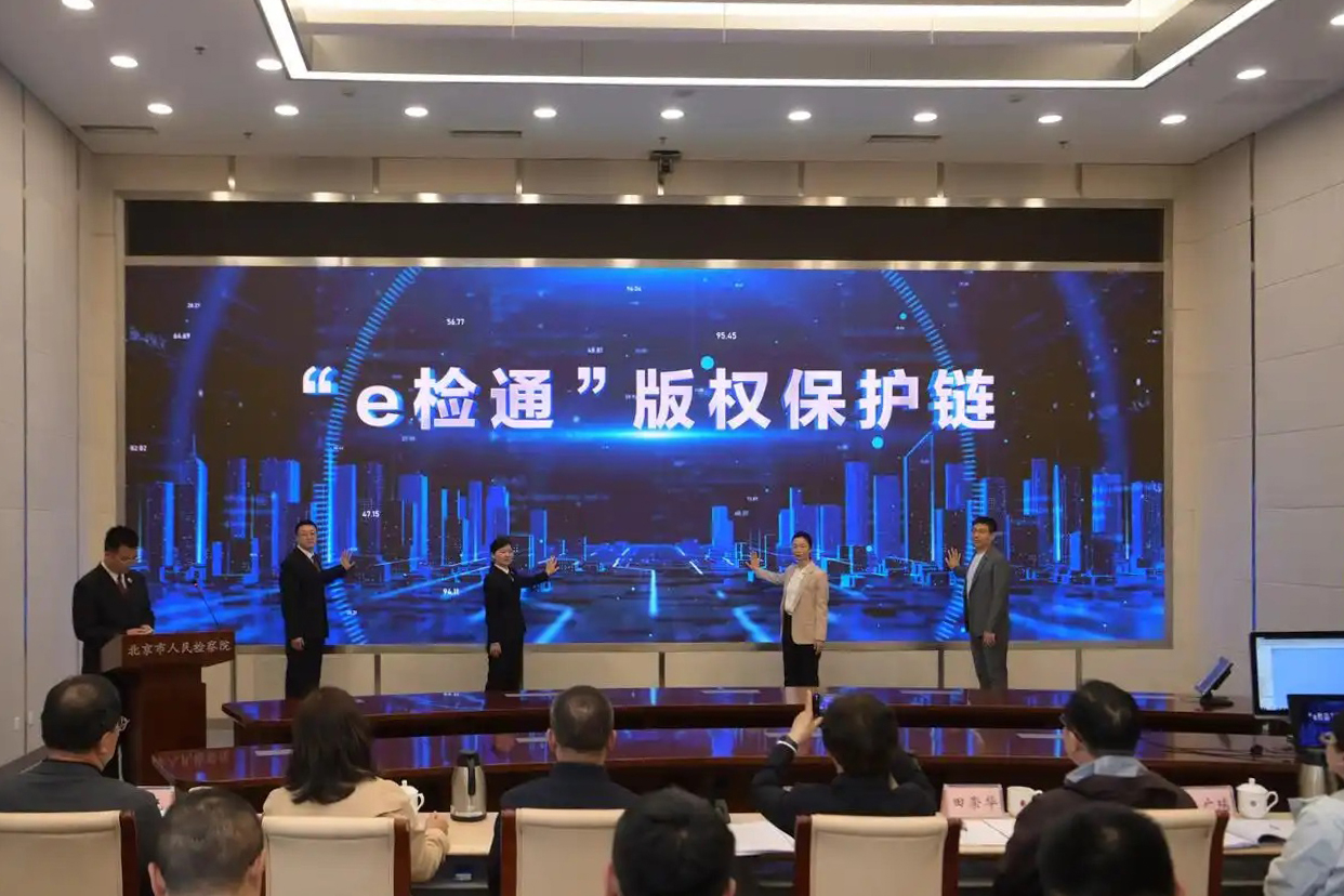 今年4月20日至26日为全国知识产权宣传周,21日,北京市检察院举行新闻发布会,正式推出全国首个“区块链+版权检察”新模式——“e检通”版权检察链,构建从版权登记、授权、使用到司法验证的全链条可信体系。