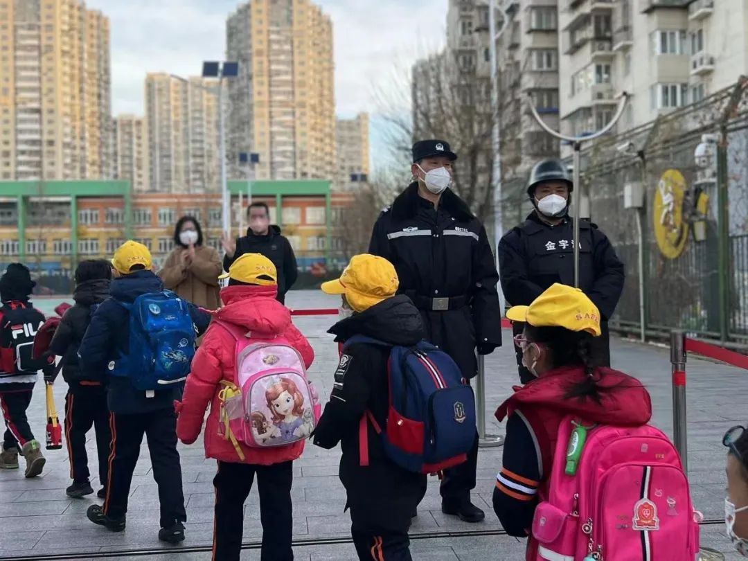 石景山分局民警严格把好“校门关”,对进入校园的人员、车辆进行核实,做好各项校园安全保障工作,为广大师生站好“护学岗”,筑起“安全墙”。