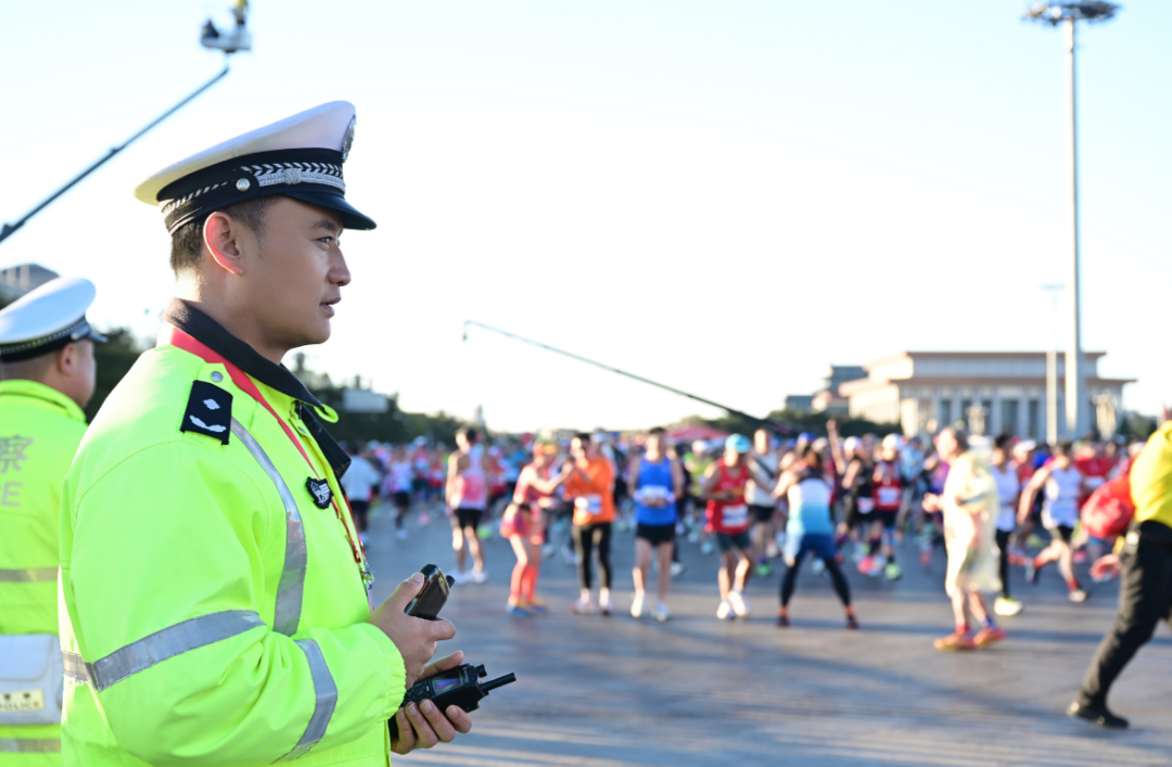 今年是我第五次参加北马了。作为一名长跑爱好者,赛道与流程于我早已熟悉,但唯有那一刻,永远崭新,永远令人心潮澎湃——那就是站在天安门广场,凝望五星红旗冉冉升起,与全场几万人同声高唱国歌。这份仪式感,是属于北马的浪漫。而作为一名首都警察,当我的目光掠过沿途一个个坚守岗位的战友,看到他们正专注地履行着守护平安的使命,我心中涌起的,是身为这支队伍一员的深深自豪。此时此刻,我们都是在各自的赛道上,竭尽全力地奔向目标。