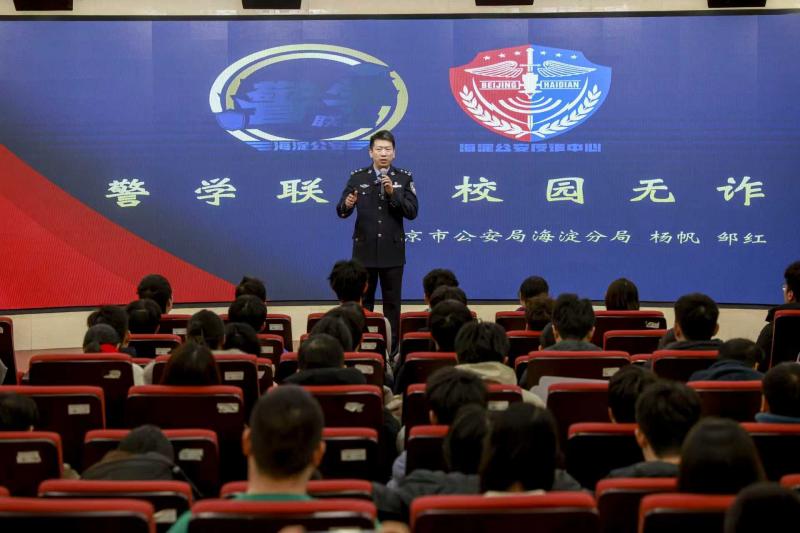 活动现场,海淀分局反诈中心民警介绍了校园多发的刷单返利、网络购物、冒充公检法等典型诈骗类型,特别是对近期以领取“奖学金”“助学金”“科研补贴”等形式实施电诈的手段进行重点提示,并号召大家争当“校园反诈宣防队志愿者”,将防骗知识传递给身边同学亲友,筑牢校园反诈防线;万寿寺派出所社区民警结合校园治安特点,围绕防火防盗、交通出行安全、报警求助等内容进行安全提示。