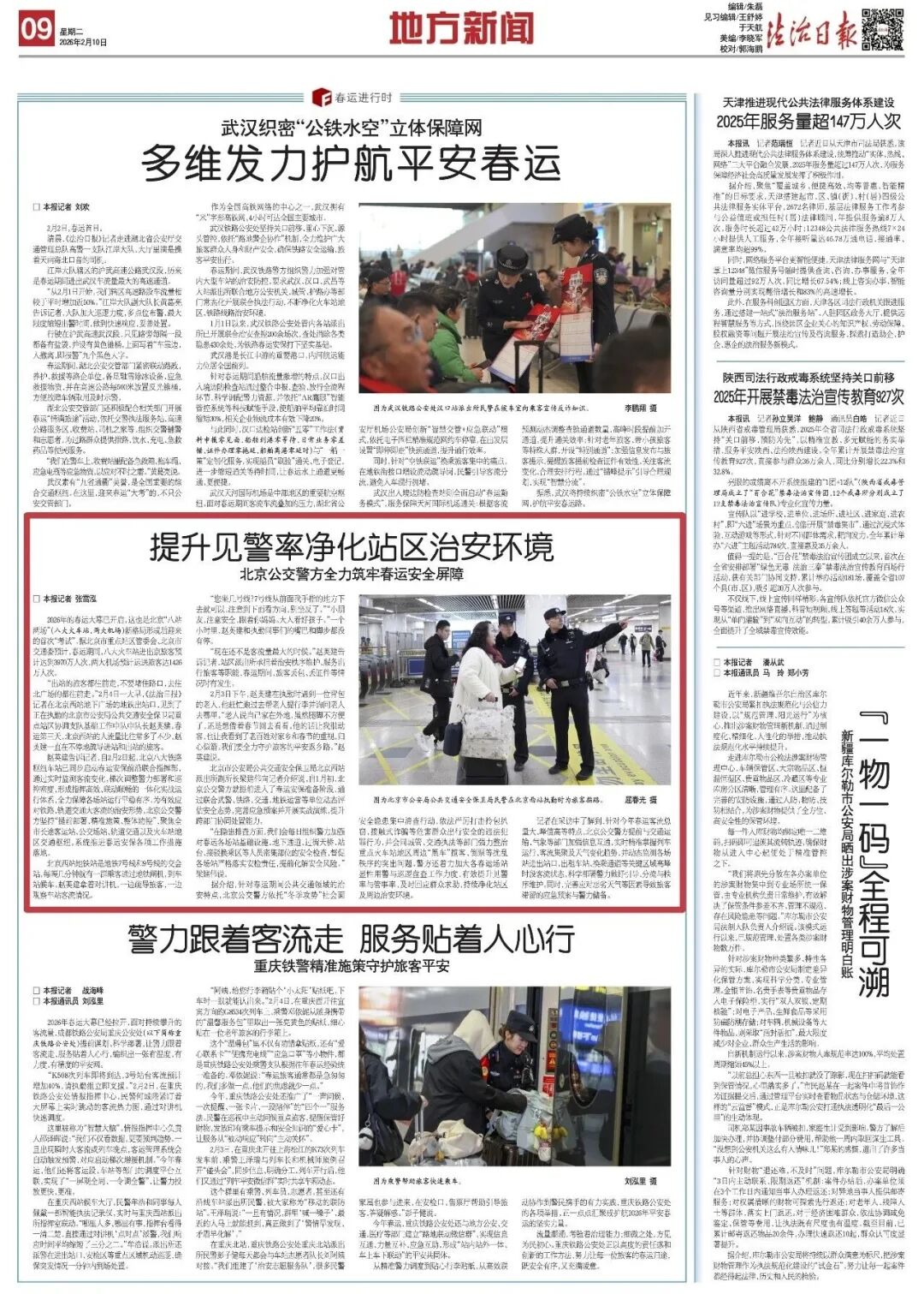 赵英建告诉记者,自2月2日起,北京八大铁路枢纽车站已同步启动春运安保前沿联合指挥部,通过实时监测客流变化,梯次调整警力部署和巡控密度,形成指挥高效、联动顺畅的一体化实战运行体系,全力保障各场站运行平稳有序。为有效应对铁路、轨道交通大客流的治安形势,北京公交警方坚持“提前部署、精准施策、整体防控”,聚焦全市长途客运站、公交场站、轨道交通以及火车站地区交通枢纽,系统推进春运安保各项工作措施落地。