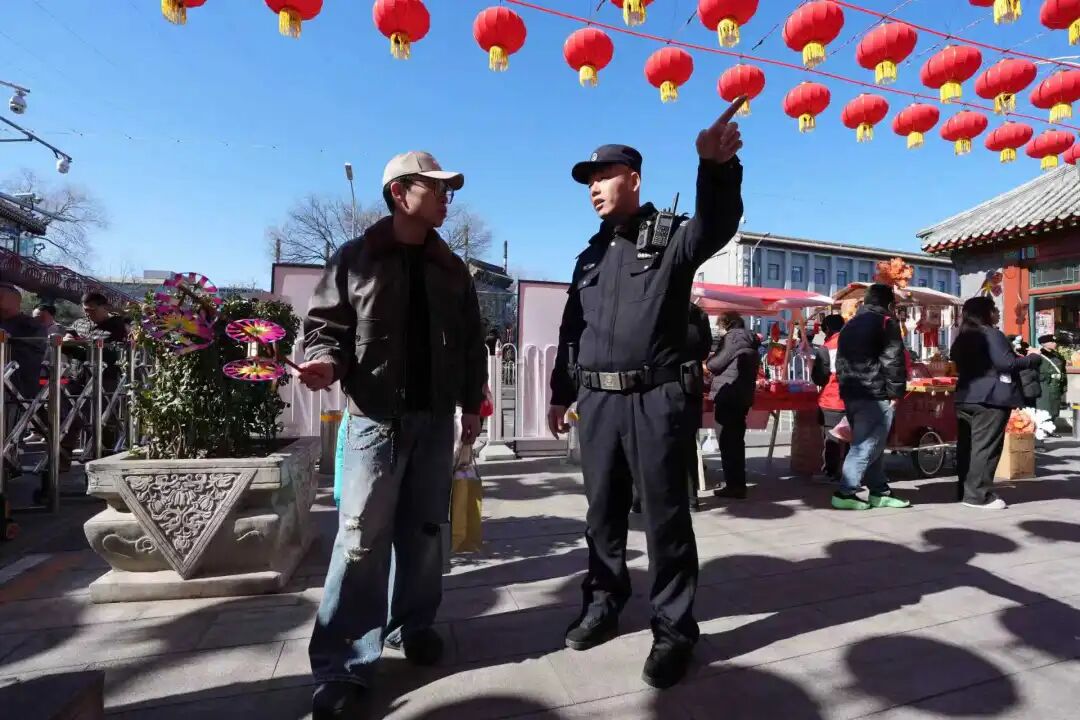 从初一到初七,赵赛成和上百名民警就这样日复一日地驻守在厂甸庙会,守护着胡同里的浓浓烟火气。“能让游客们平平安安、高高兴兴地感受厂甸庙会的民俗文化,过一个喜庆祥和的新春佳节,是我们所有执勤民警最大的期待。”赵赛成说。