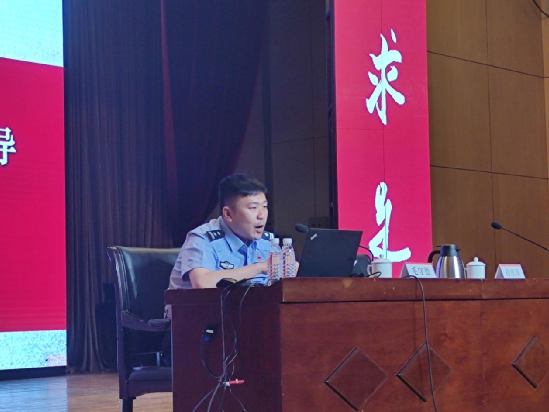 市公安局内保局文保支队高校保卫大队大队长毛守德在讲座中