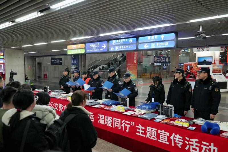 2月14日上午,北京西站地下二层中央大厅内暖意融融,旅客川流不息,一场别开生面的安全宣传活动在此展开。为全力护航春运,提升旅客安全出行意识,北京市公安局公共交通安全保卫局联合市重点站区管委会、西站综合管理办公室、铁路、消防、城管等部门及京诚客志愿者团队,共同举办“平安春运,温暖同行”安全出行宣传活动。