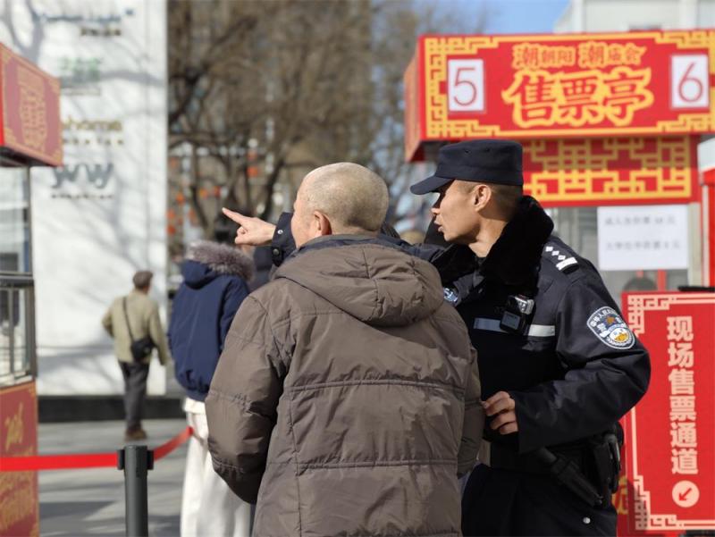 据介绍,针对春节期间辖区各大庙会活动密集、人流高度聚集的特点,朝阳公安提前制定详尽的安保工作方案和应急预案,加强与属地相关部门及庙会主办方沟通对接,督促落实安全主体责任,完善应急预案,配齐安保力量。通过多方协作、齐抓共管,形成了“政府主导、部门联动、社会参与”的大安保格局,明确“万无一失”的工作标准。假期九天中,采取“定点值守+动态巡视+多警种联动”的三位一体防控模式,坚持最大化部署警力。让群众感受到安全感无处不在。